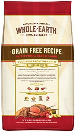 Whole Earth Farms Dog Food. All of the ingredients used in whole earth farms formulas are wholesome and healthy for dogs to consume. We take wholesome, healthy ingredients from the earth and mix them into a your dog deserves the very best complete and balanced nutrition, so choose this whole earth farms grain free pork, beef and lamb dog food.